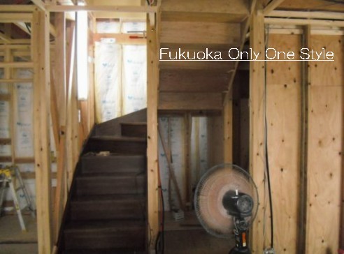 ▽一階階段まわり 石膏ボードの継ぎ目やビスに下地パテを塗ります